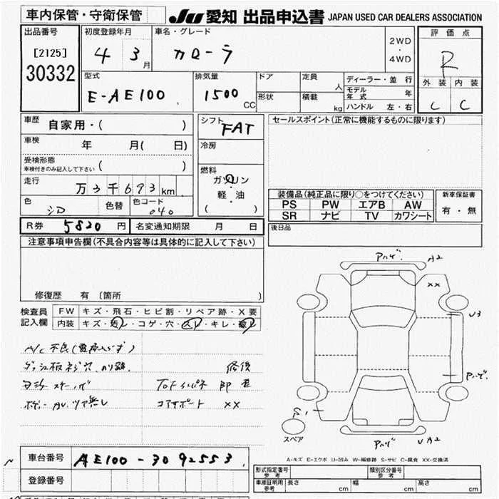 DX | E-AE100 | 5A-FE | FF | 3AT | 1498cc | 105ps(77kW)/6000rpm | AИ-92 | 1 041 000 | |