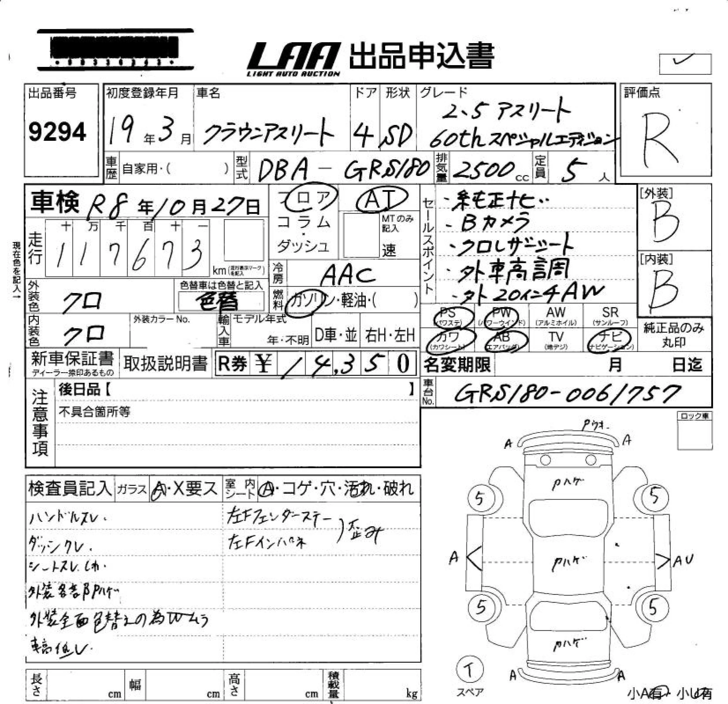 • Комплектация: 2.5 Athlete 60thスペ