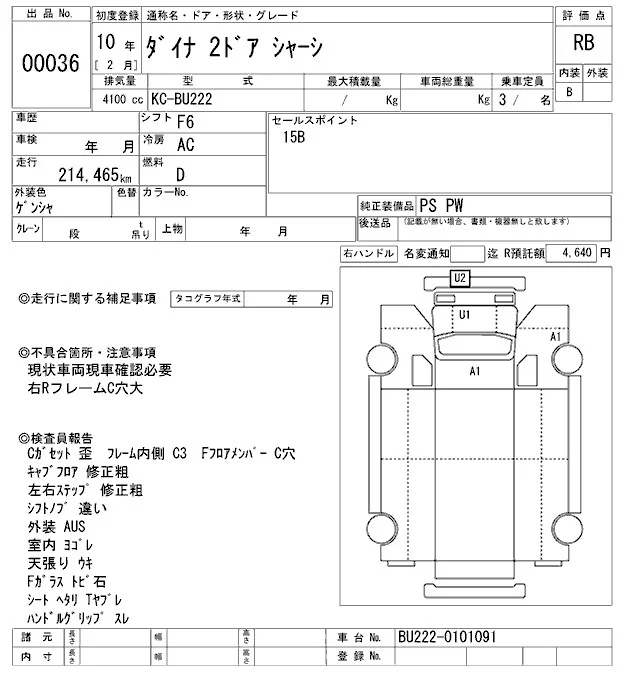 - Кузов: BU222