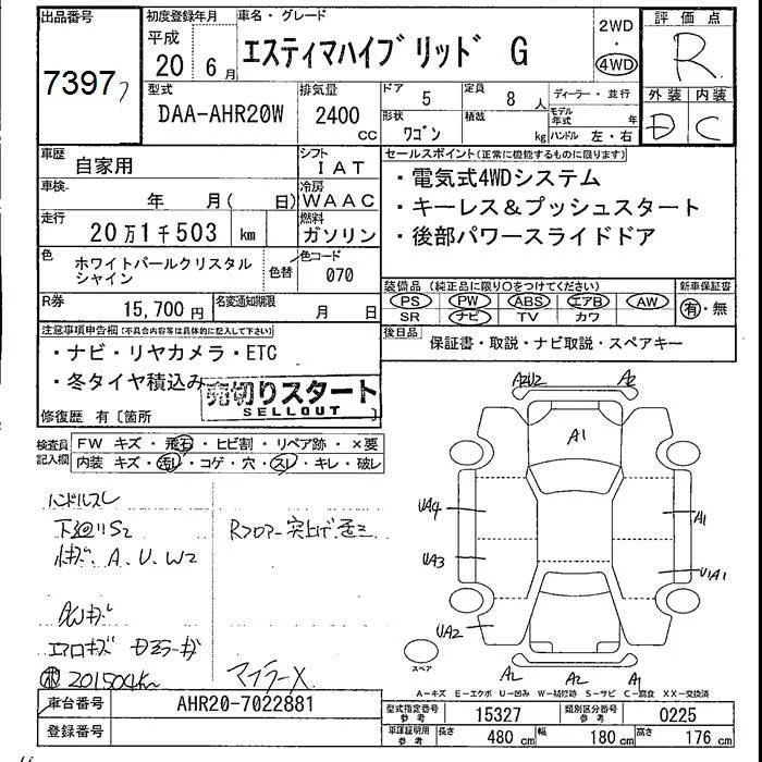 X | DAA-AHR20W | 2AZ-FXE | Full-time 4WD | CVT | 2362cc | 150ps(110kW)/6000rpm | AИ-92 | 3 800 000 | |