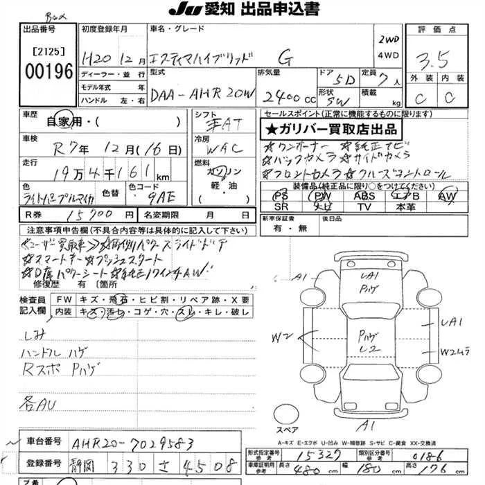 G LEATHER PACKAGE | DAA-AHR20W | 2AZ-FXE | Full-time 4WD | CVT | 2362cc | 150ps(110kW)/6000rpm | AИ-92 | 5 060 000 | |