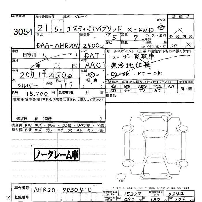 X | DAA-AHR20W | 2AZ-FXE | Full-time 4WD | CVT | 2362cc | 150ps(110kW)/6000rpm | AИ-92 | 3 800 000 | |