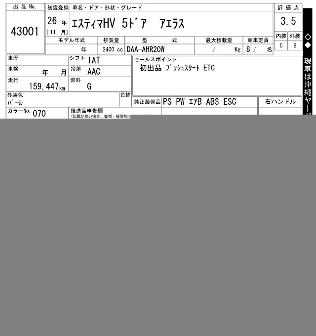 AERAS | DAA-AHR20W | 2AZ-FXE | Full-time 4WD | CVT | 2362cc | 150ps(110kW)/6000rpm | AИ-92 | 4 138 000 | |