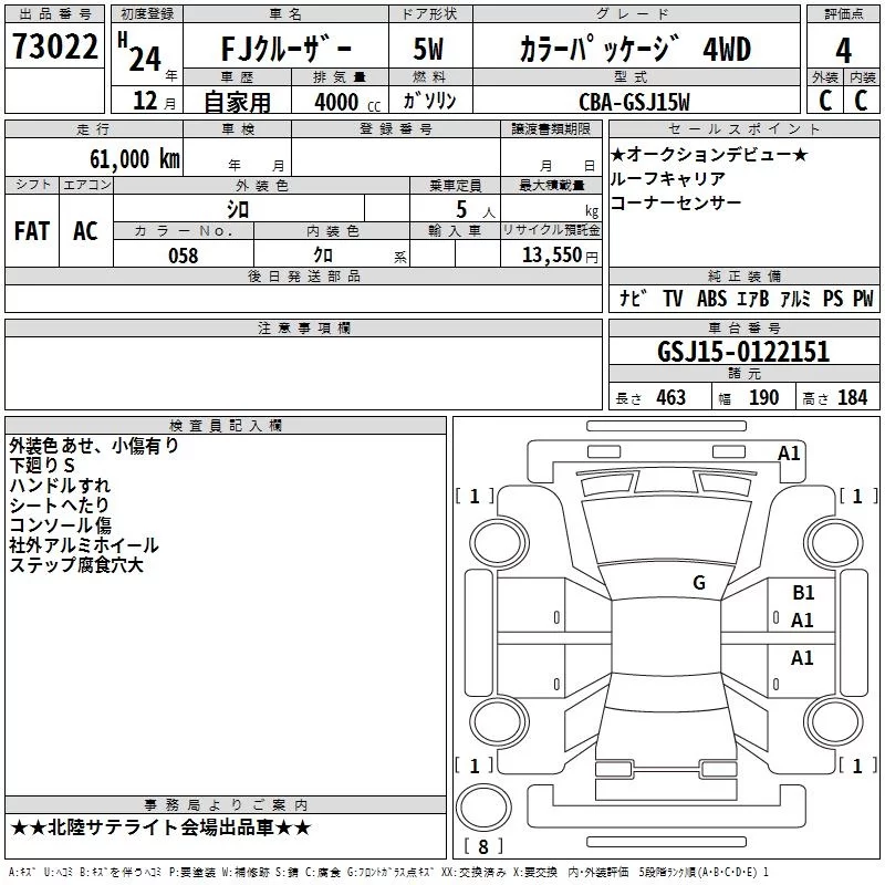 • Комплектация: カラ- Package 4WD