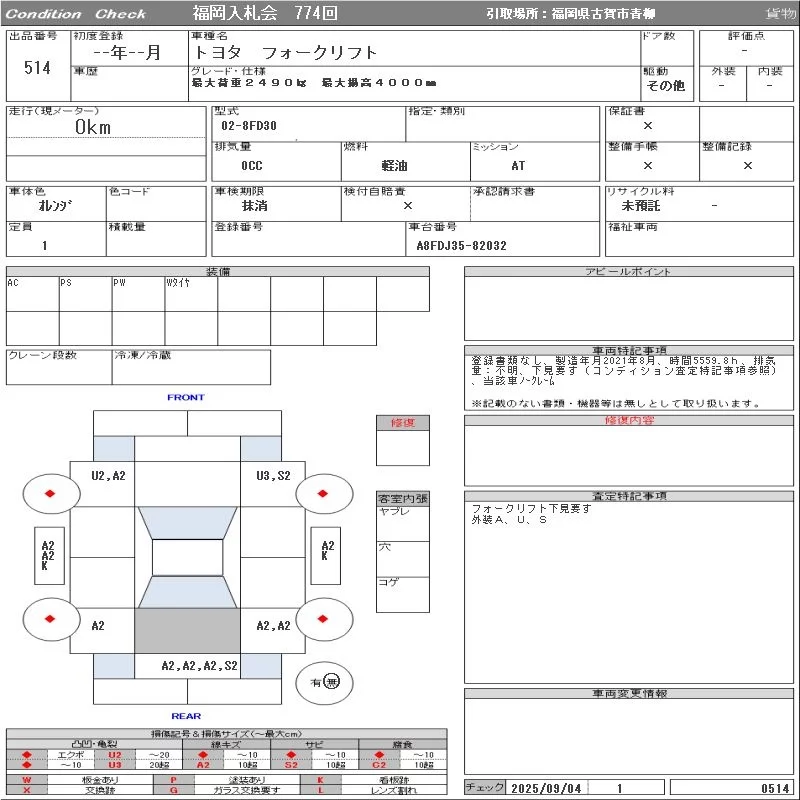 - Комплектация: 最大荷重2490㎏ 最大揚高4000㎜