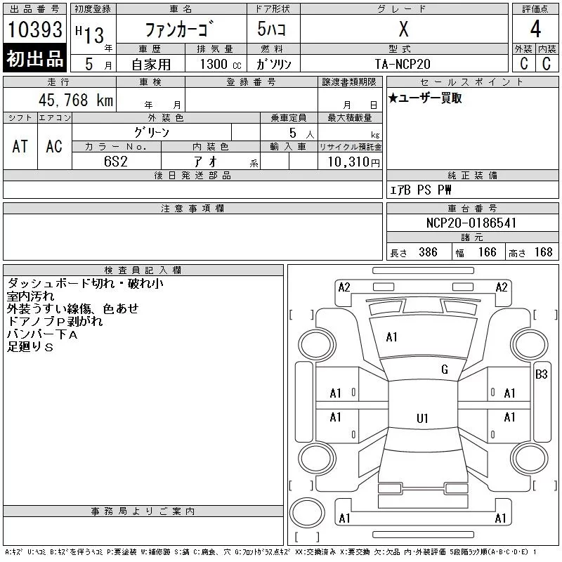 G | TA-NCP21 | 1NZ-FE | FF | 4AT | 1496cc | 110ps(81kW)/6000rpm | AИ-92 | 1 490 000 | |