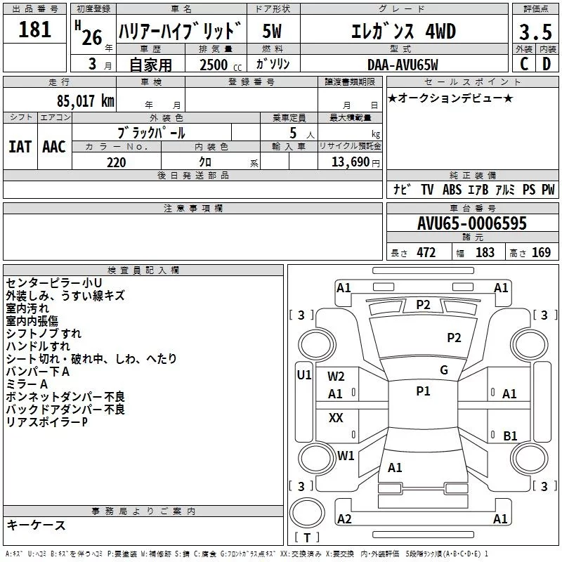 • Кузов: AVU65W