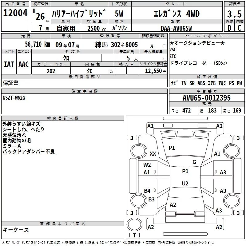• Кузов: AVU65W