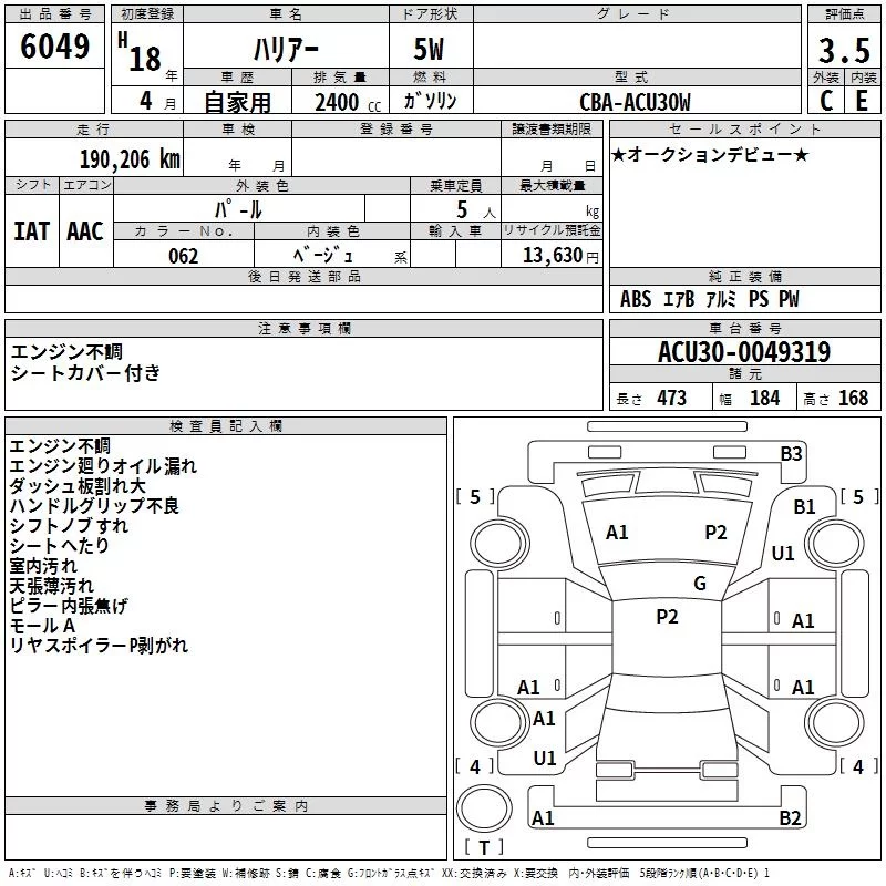 - Кузов: ACU30W