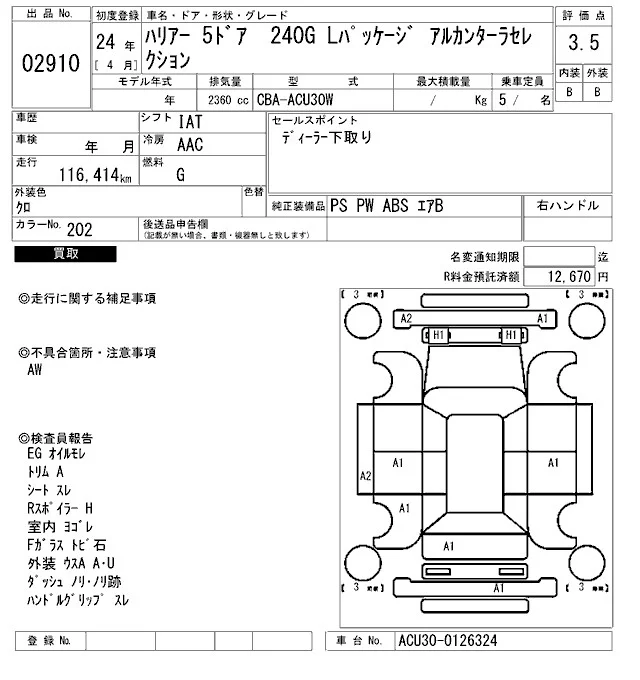 • Кузов: ACU30W