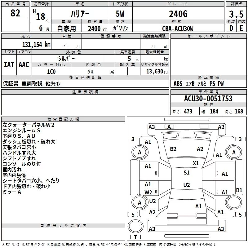 - Кузов: ACU30W