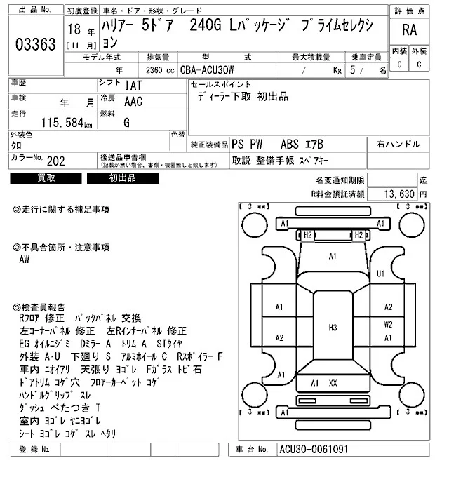 - Кузов: ACU30W
