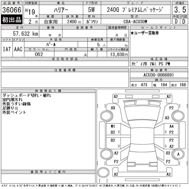 • Кузов: ACU30W