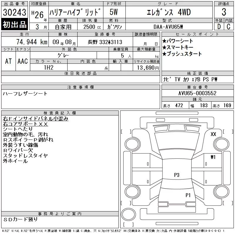 • Кузов: AVU65W