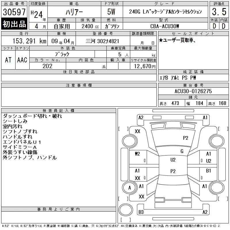 • Кузов: ACU30W