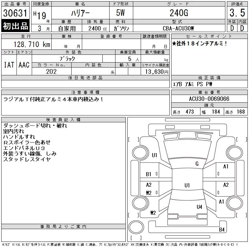 • Кузов: ACU30W