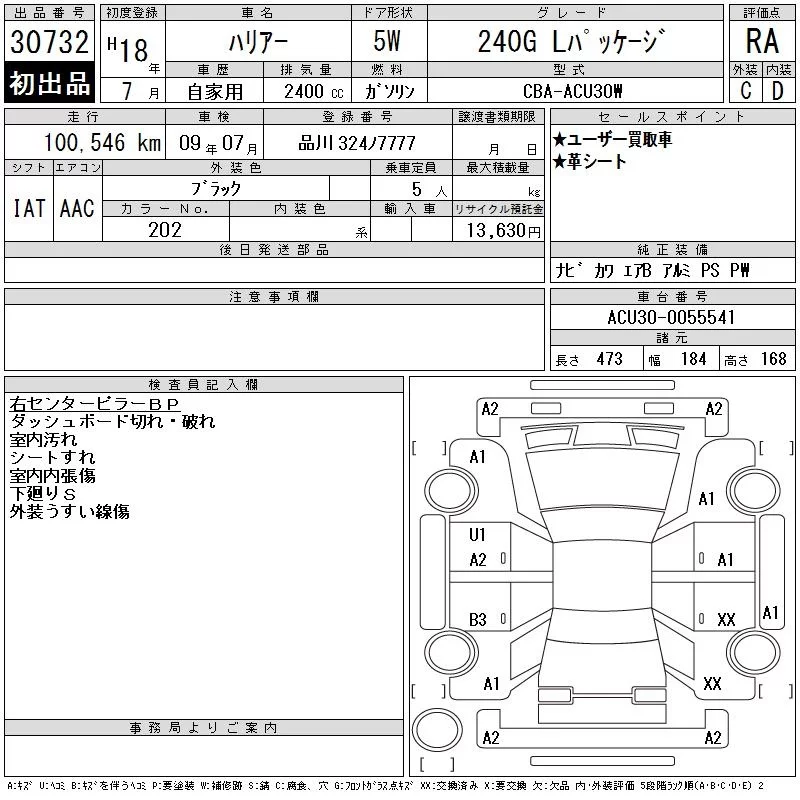 - Кузов: ACU30W