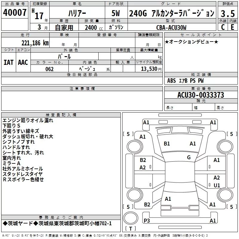 - Кузов: ACU30W