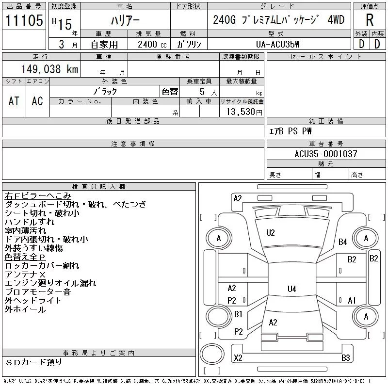 - Кузов: ACU35W