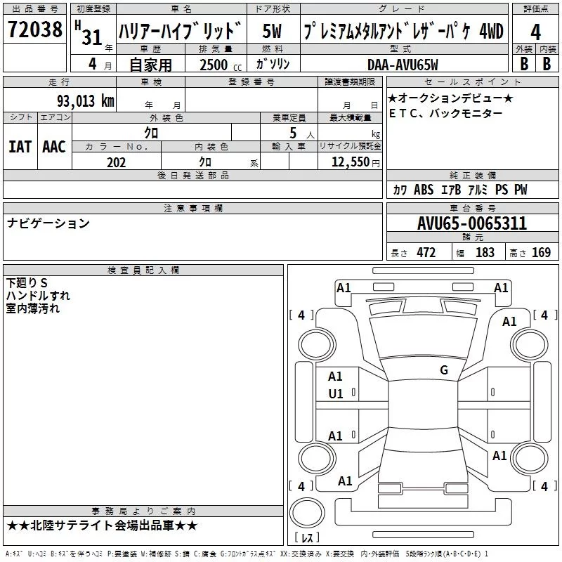 - Комплектация: Premium メタルアンド Leather 4WD