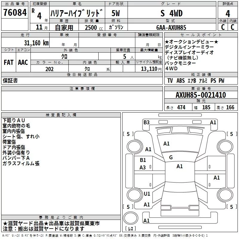 • Кузов: AXUH85