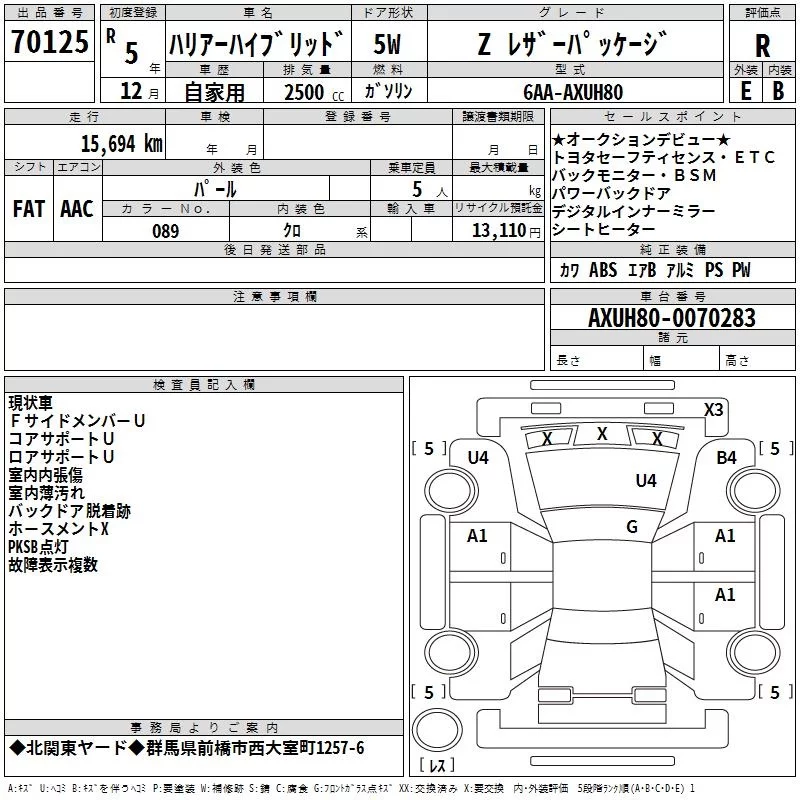 • Кузов: AXUH80