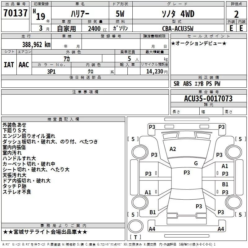 • Комплектация: ソノタ 4WD