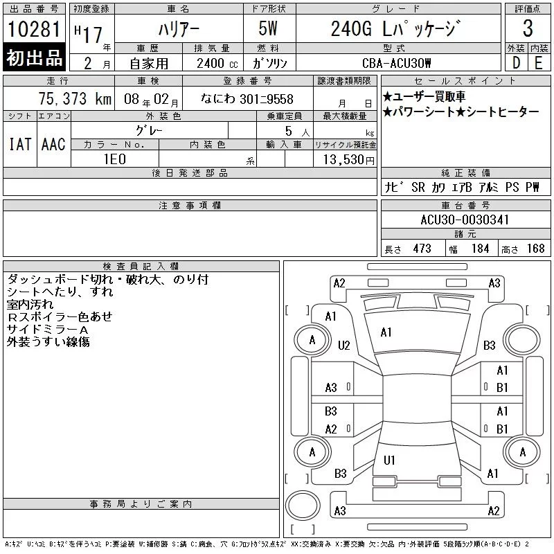 - Кузов: ACU30W