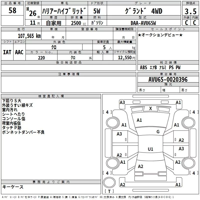 • Кузов: AVU65W
