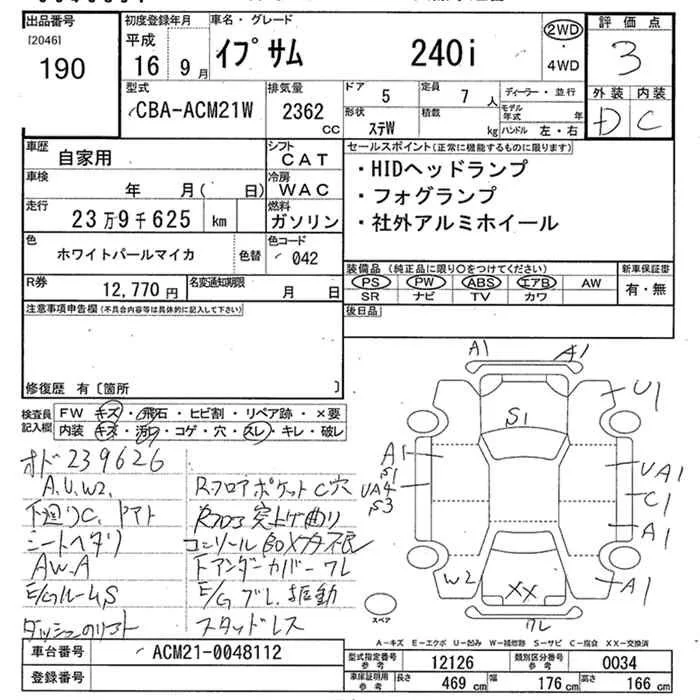 240U G SELECTION | CBA-ACM21W | 2AZ-FE | FF | 4AT | 2362cc | 160ps(118kW)/5700rpm | AИ-92 | 2 772 000 | |