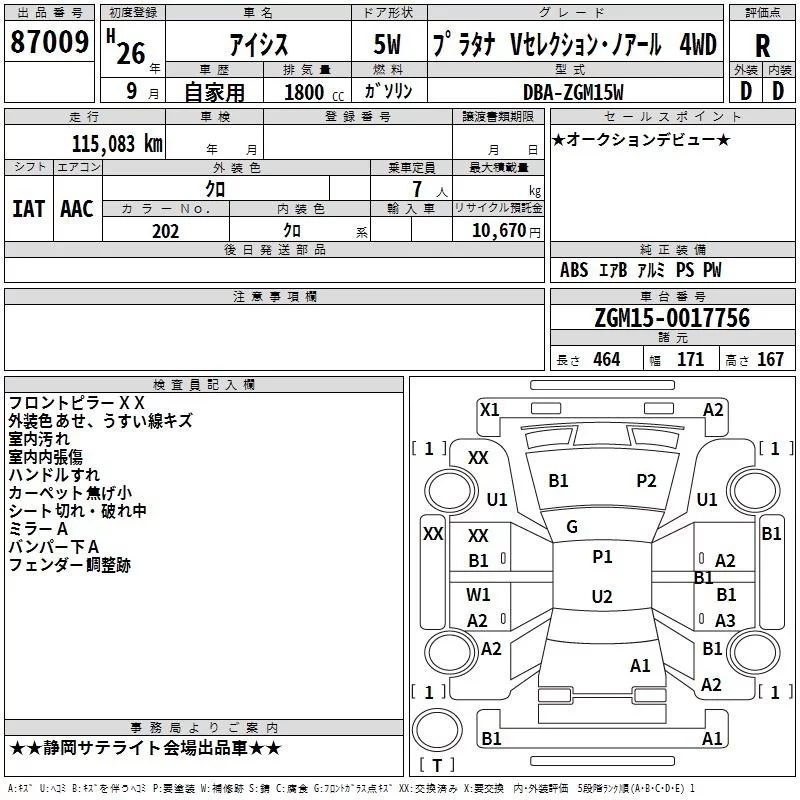 • Комплектация: Platana V Selection ノア 4WD