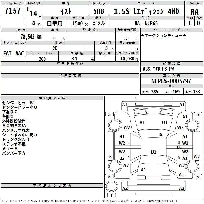 1.5 F | UA-NCP65 | 1NZ-FE | Full-time 4WD | 4AT | 1496cc | 105ps(77kW)/6000rpm | AИ-92 | 1 470 000 | |