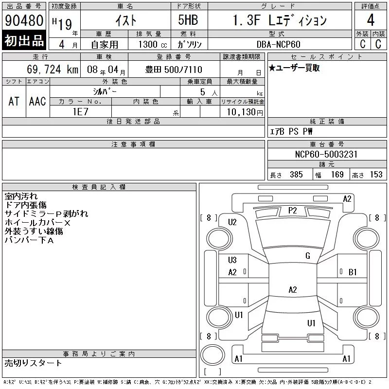 150G | DBA-NCP115 | 1NZ-FE | Full-time 4WD | CVT | 1496cc | 103ps(76kW)/6000rpm | AИ-92 | 1 995 000 | |