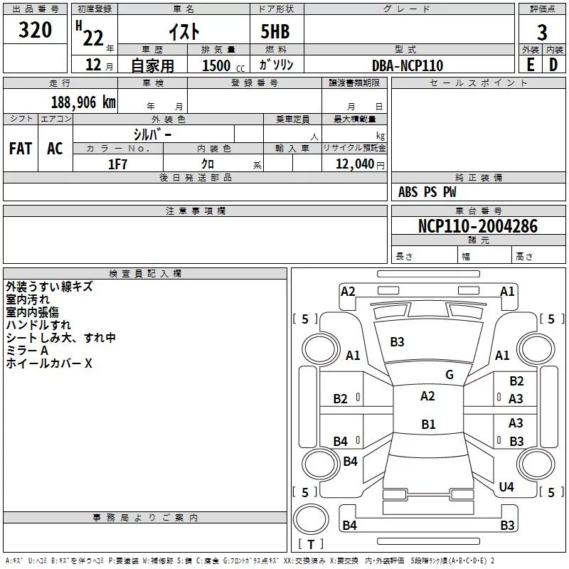 150G | DBA-NCP115 | 1NZ-FE | Full-time 4WD | CVT | 1496cc | 103ps(76kW)/6000rpm | AИ-92 | 2 055 000 | |