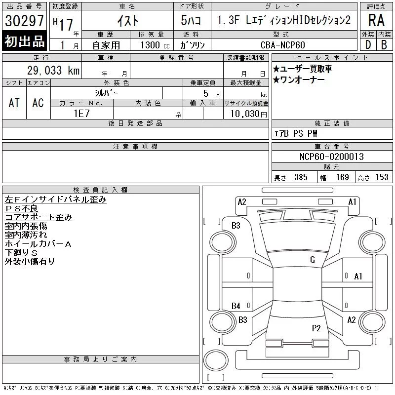 1.3 F L EDITION | DBA-NCP60 | 2NZ-FE | FF | 4AT | 1298cc | 87ps(64kW)/6000rpm | AИ-92 | 1 386 000 | |