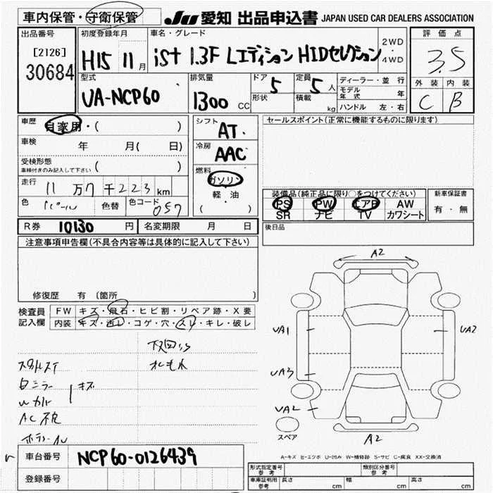 1.3 F L EDITION HID SELECTION NAVI SPECIAL | UA-NCP60 | 2NZ-FE | FF | 4AT | 1298cc | 87ps(64kW)/6000rpm | AИ-92 | 1 380 000 | |