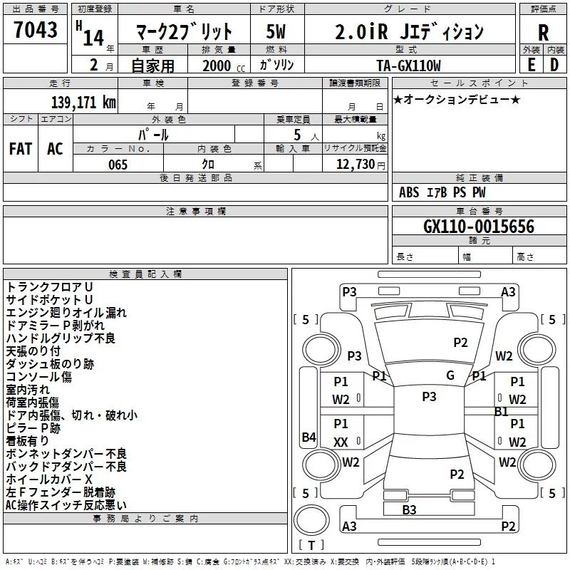 - Кузов: GX110W