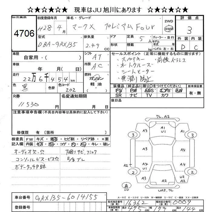 250S FOUR | DBA-GRX135 | 4GR-FSE | Full-time 4WD | 6AT | 2499cc | 203ps(149kW)/6400rpm | AИ-92 | 3 452 760 | |