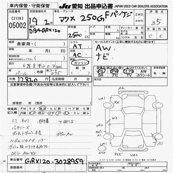 250G LIMITED | DBA-GRX120 | 4GR-FSE | FR | 6AT | 2499cc | 215ps(158kW)/6400rpm | AИ-95 | 2 782 500 |
