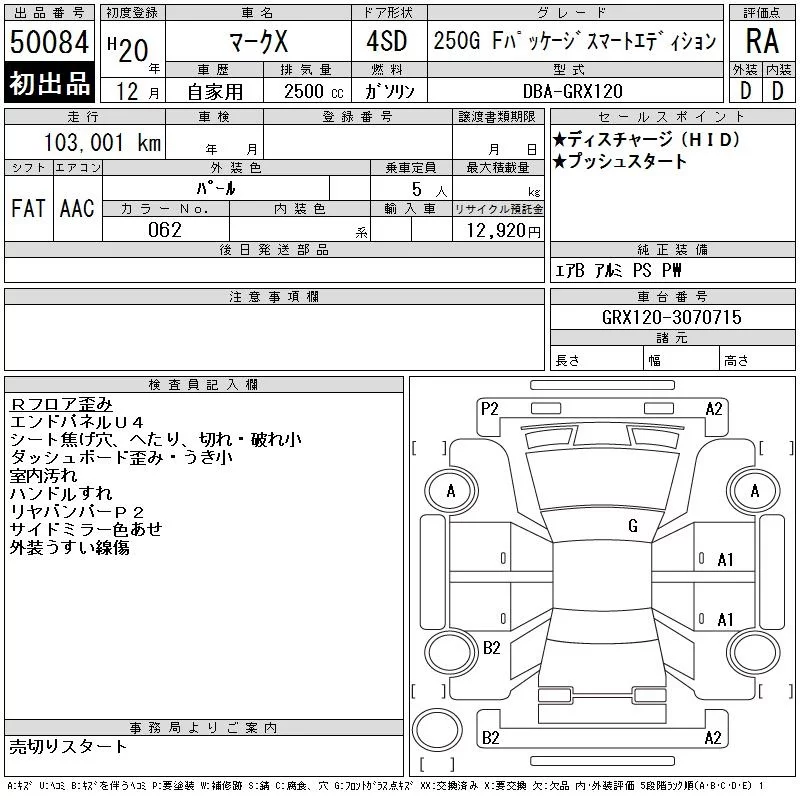 250G F PACKAGE SMART EDITION | DBA-GRX120 | 4GR-FSE | FR | 6AT | 2499cc | 215ps(158kW)/6400rpm | AИ-95 | 2 656 500 |