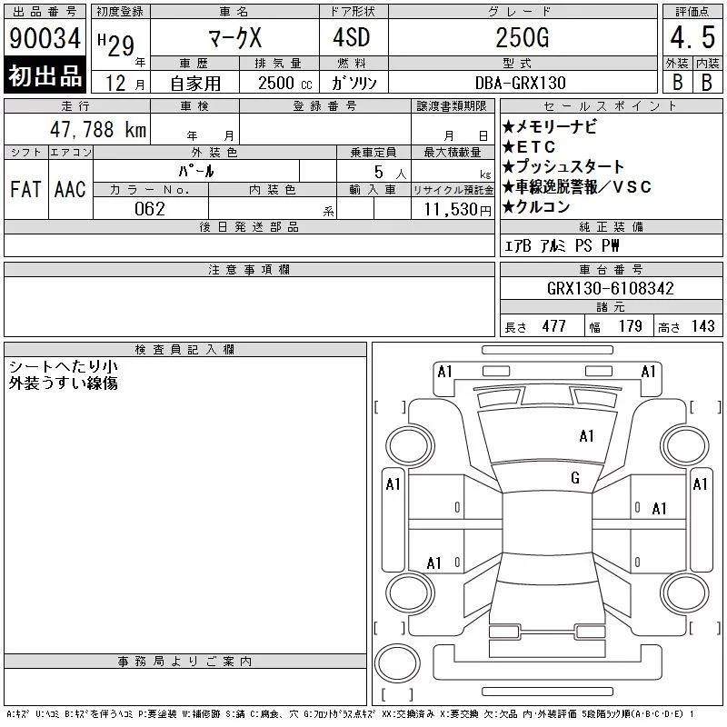 250S GR SPORT | DBA-GRX130 | 4GR-FSE | FR | 6AT | 2499cc | 203ps(149kW)/6400rpm | AИ-92 | 3 809 160 |