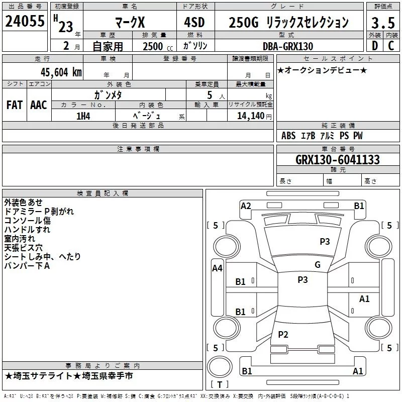 250G RELAX SELECTION BLACK LEATHER LIMITED | DBA-GRX130 | 4GR-FSE | FR | 6AT | 2499cc | 203ps(149kW)/6400rpm | AИ-92 | 2 980 000 |