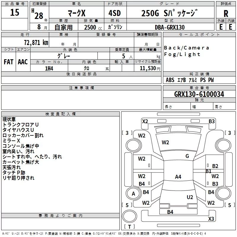 250S FOUR | DBA-GRX135 | 4GR-FSE | Full-time 4WD | 6AT | 2499cc | 203ps(149kW)/6400rpm | AИ-92 | 3 452 760 | |