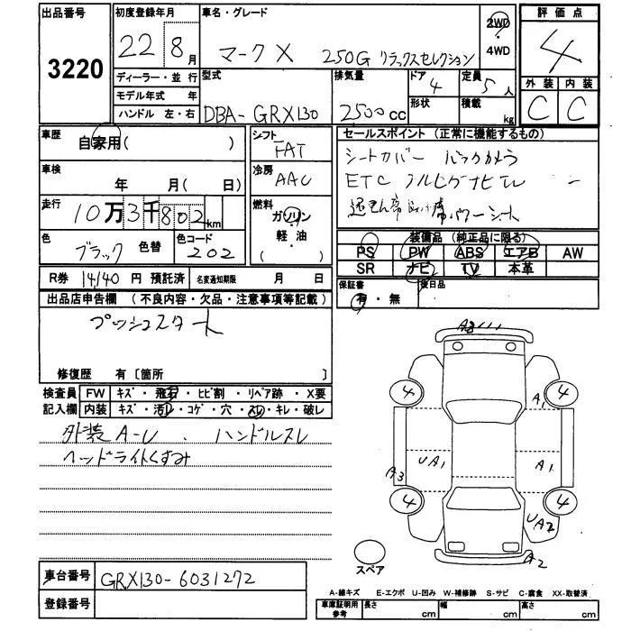 250G FOUR BLACK LIMITED | DBA-GRX135 | 4GR-FSE | Full-time 4WD | 6AT | 2499cc | 203ps(149kW)/6400rpm | AИ-92 | 2 981 000 | |