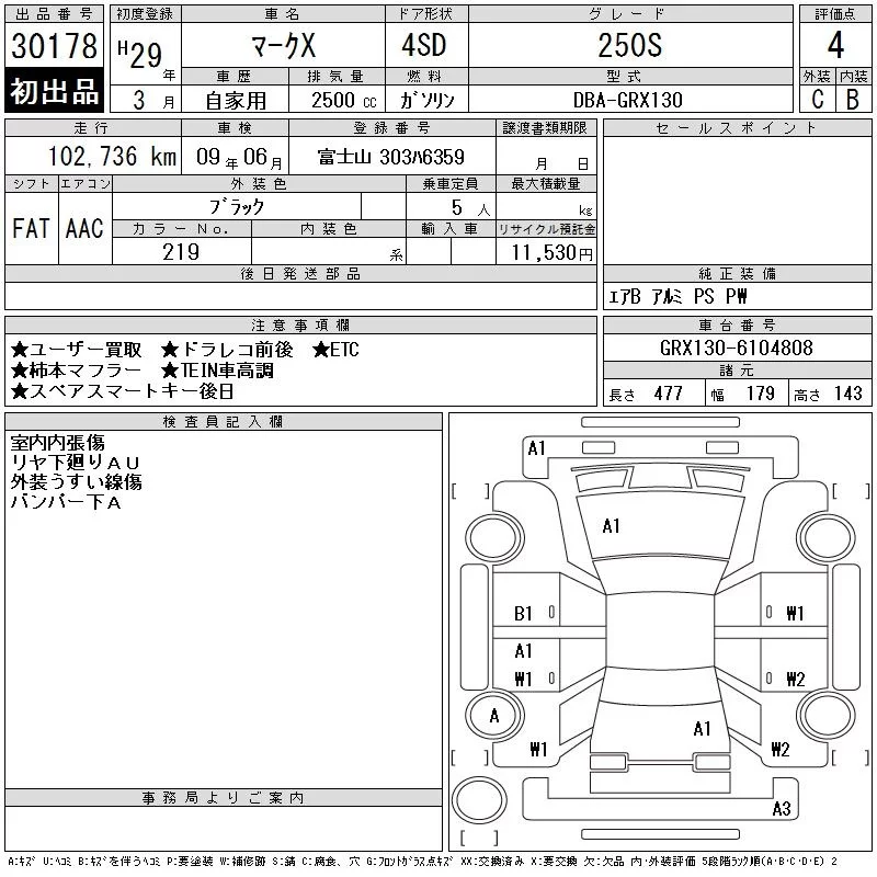 250S GR SPORT | DBA-GRX130 | 4GR-FSE | FR | 6AT | 2499cc | 203ps(149kW)/6400rpm | AИ-92 | 3 809 160 |