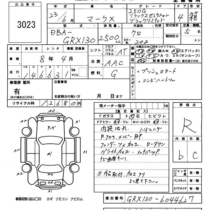250G FOUR BLACK LEATHER LIMITED | DBA-GRX135 | 4GR-FSE | Full-time 4WD | 6AT | 2499cc | 203ps(149kW)/6400rpm | AИ-92 | 3 211 000 | |
