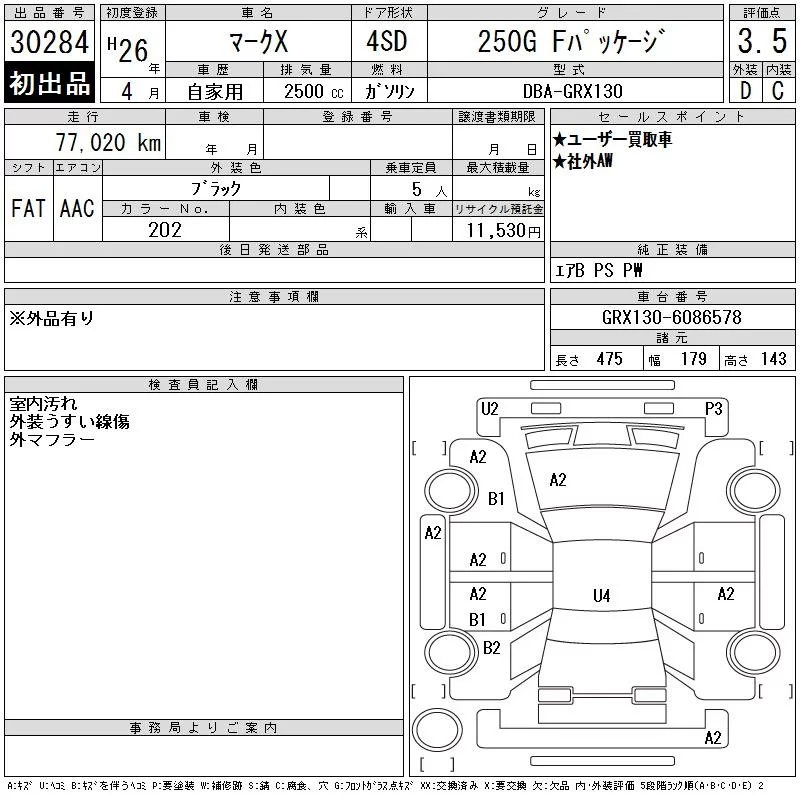 250G FOUR | DBA-GRX135 | 4GR-FSE | Full-time 4WD | 6AT | 2499cc | 203ps(149kW)/6400rpm | AИ-92 | 3 014 743 | |