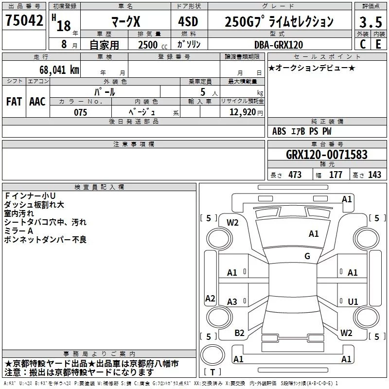 250G PRIME SELECTION | DBA-GRX120 | 4GR-FSE | FR | 6AT | 2499cc | 215ps(158kW)/6400rpm | AИ-95 | 2 677 500 |