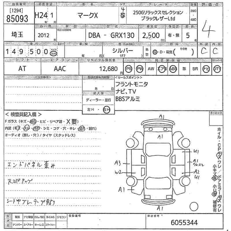 PREMIUM FOUR | DBA-GRX135 | 4GR-FSE | Full-time 4WD | 6AT | 2499cc | 203ps(149kW)/6400rpm | AИ-92 | 3 151 000 | |