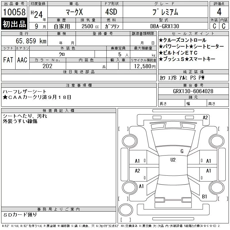 PREMIUM FOUR | DBA-GRX135 | 4GR-FSE | Full-time 4WD | 6AT | 2499cc | 203ps(149kW)/6400rpm | AИ-92 | 3 151 000 | |